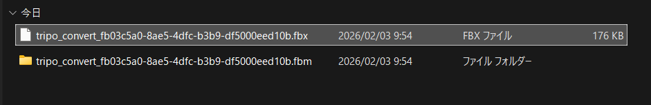 - Tripo Studioでダウンロードした元のFBXデータもダウンロードしておく(materialをインポートするのに必要)