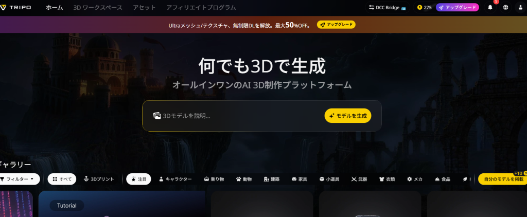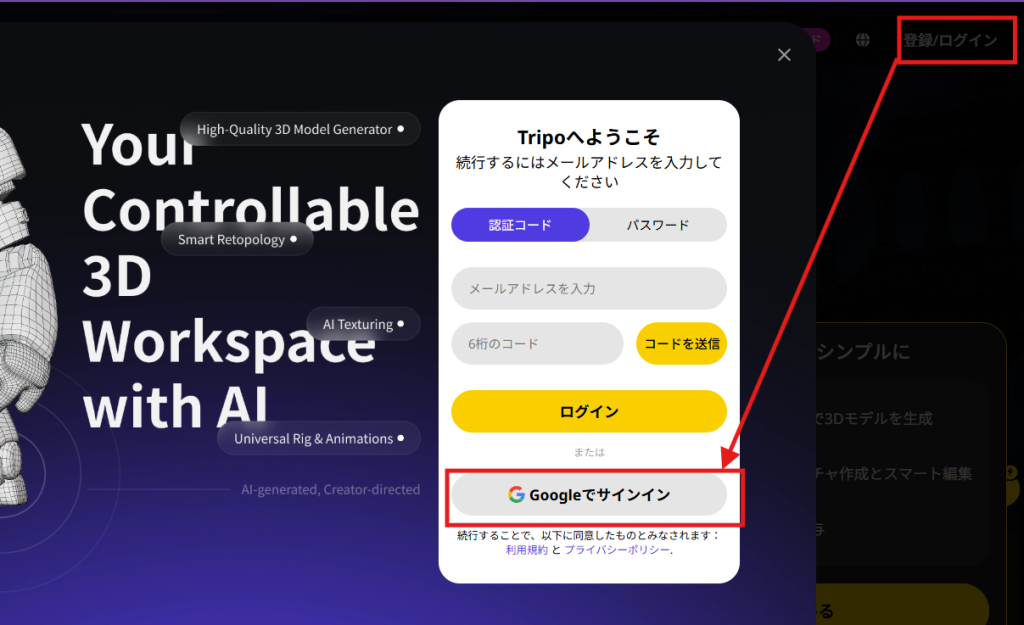 - Tripo Studioにアクセス